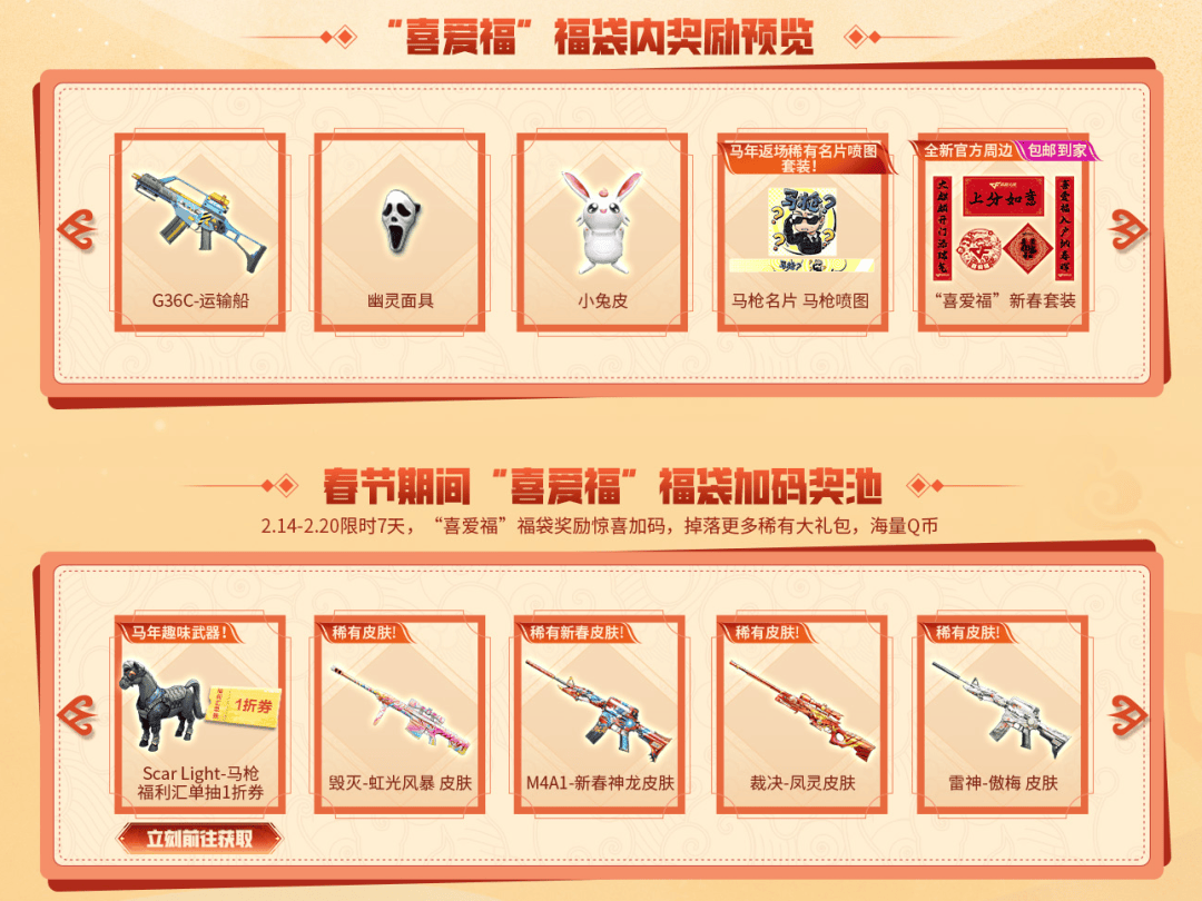 2.14-2.20期间,限时7天CFer可使用喜爱福开启春节期间专属福袋。