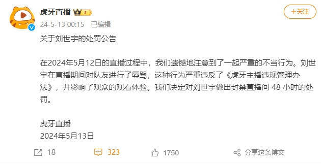 他还表示,“我虚心接受大家的批评和指正,也完全接受并尊重平台所做出的处罚决定。我会以此事引以为戒,吸取教训。再次向大家表示最诚挚的歉意,希望大家能够给我一个改正错误的机会。”